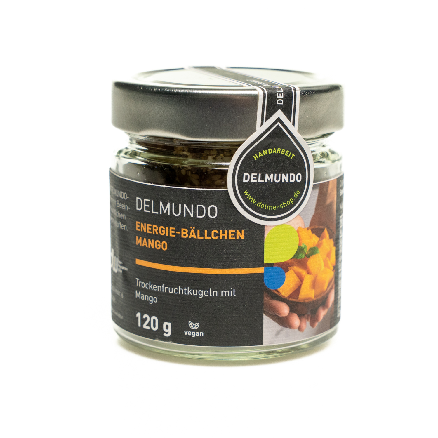 Saftige Datteln, aromatische Rosinen und mild-knackige Cashewkerne sind die Basis für diese handlichen Kraftpakete, ummantelt von weißem Sesam. Sonnengereifte Mangos entfalten eine angenehme tropische Süße mit fruchtigem Aroma. Praktisch verpackt im wiederverwendbaren Schraubglas eignen sich die Kugeln perfekt als Snack für unterwegs. Natürlich, energiereich, ganz ohne künstliche Zusatzstoffe und mit Sorgfalt hergestellt hergestellt in unserer Manufakturküche - einem Teilhabeangebot für Menschen mit Behinderung. Tropischer Genuss für jede Gelegenheit.