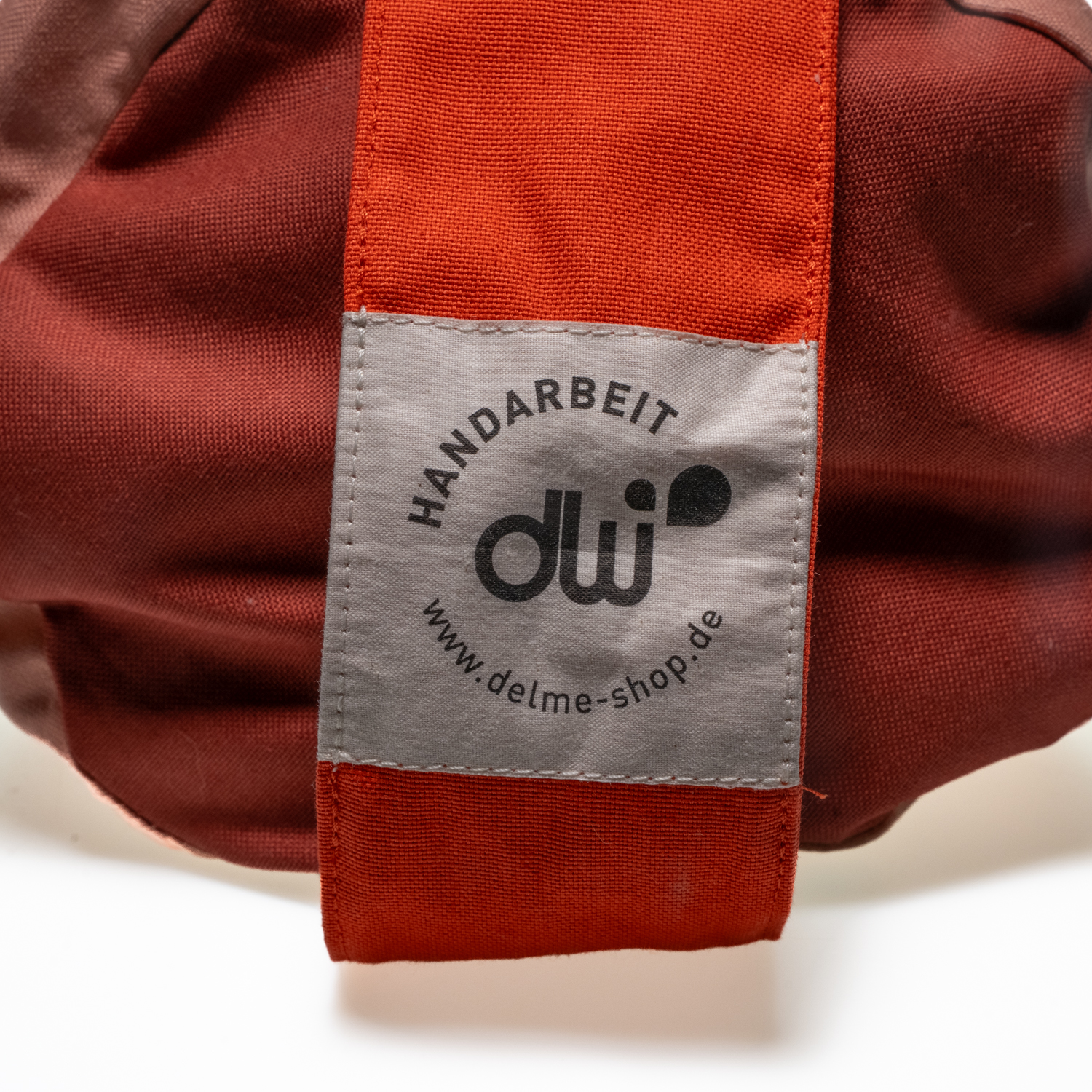 Der Außenbezug ebenfalls aus reinem Baumwollstoff (teilweise in der Kombination mit flauschigem Cord-Stoff) mit der praktischen Trageschlaufe und Dehnfalten kann mit dem eingenähten Reißverschluss abgezogen werden und ist bei 30°C waschbar.